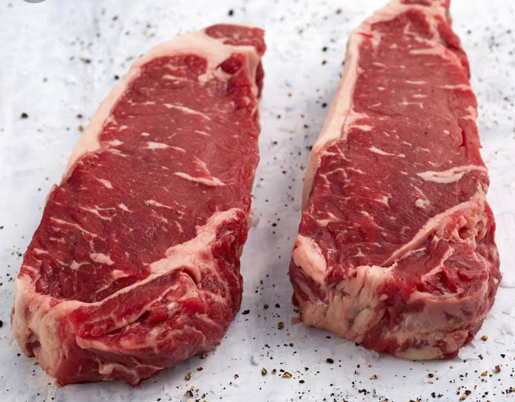 5 steaks. 1 steaks in a package. 1 inch thick. Packaged Frozen. Roughly 14-16 oz per steak.
